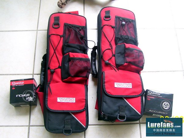 1.今收到UPS包裹一件,初一看,有路亚背包2个,QUANTUM(量子) 鼓轮和纺车轮各一.别的不多说,包里有乾坤!每个包里有: