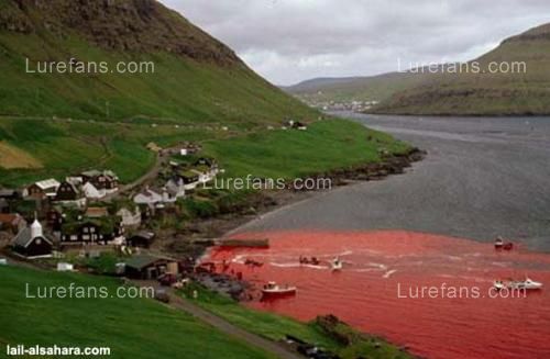 我在旅途中,收到比利时作家Tomislav Dretar的来信,并寄来一组血淋淋的照片。说的是丹麦属地法罗群岛上的渔民集体屠杀海豚,鲜血染红了整个海湾。