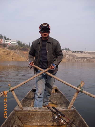 我们在做准备工作,老板在做收网工作,皮划艇后面就是老板打渔的网。