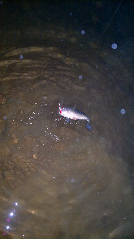 天色暗了不少,我决定把亮片换成红白的超级响尾蛇。