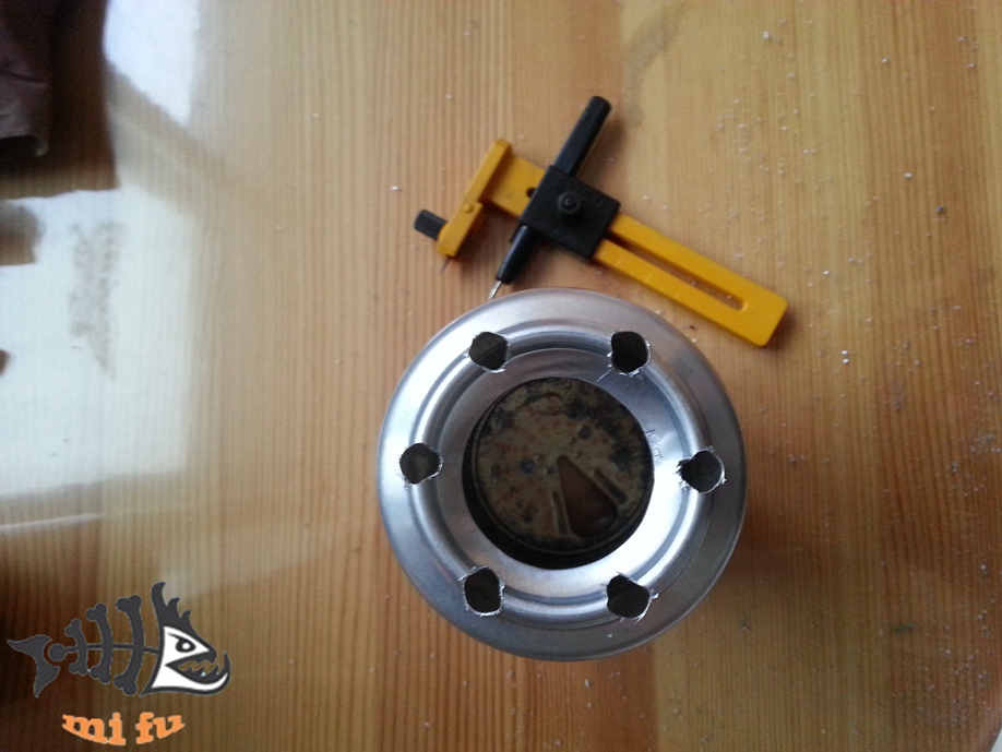 5、开孔、打眼完毕的样子,用锉刀砂纸修整边缘毛刺。