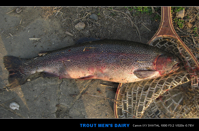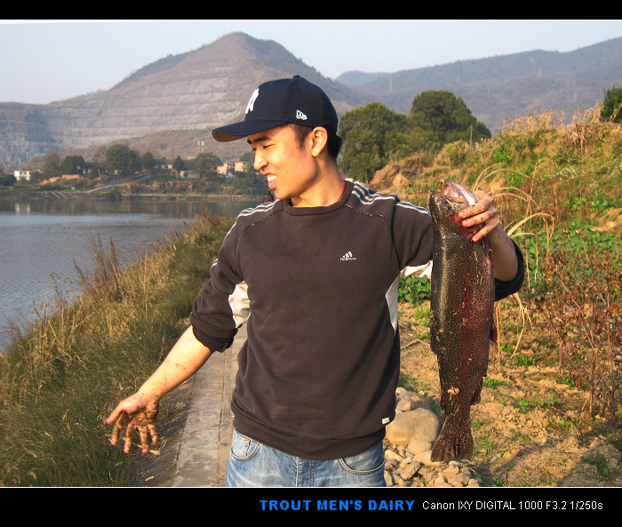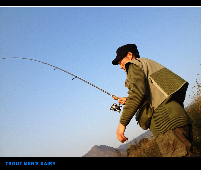 2015年1月2日。周五。晴。 发小Chen 1号晚来电话说他儿子筱维想跟我出去钓鱼玩问我有否时间,我刚从广州回来正有去小东江钓鳟鱼的打算,于是允诺下来。 2号晨8点Chen驾车载着儿子如约到会面的地点来接我,一行仨人直奔小东江而去。为此行我准备了三套直柄竿,一支是我常用的那支1.8米L调的,一支是1.68米ML钓的,还有一支是2.4米M调的。拟饵以亮片为主,不同色泽不同重量的都有。考虑到节假日期间江边钓鱼的人肯定不少,我们把今日的首个钓点定在海竿哥、手竿哥都不愿意去的水草茂密的瓷砖大阶梯附近的钓场。 天气预报说今日气温最高时能达到摄氏19度,这对于冬季户外活动再适宜不过了,但在这样的天气里能否钓到鳟鱼我还真拿不准。水流近乎静止,水位也低,肯定上游电站的闸门多数都已关闭。由于水位低,水看上去格外的清澈,水下结构历历在目,但就是不见鳟鱼的踪影,哪怕是一个“鱼花”也难得一见。我今天使用2.4米的那支路亚竿,另外两支短而轻的竿子交由Chen氏父子使用。三个人搜遍了从瓷砖阶梯到老大桥一线的所有钓点均无咬口,整个上午唯一的“收获”就是把渔线洗得干干净净。 午饭过后我们转场至鳟鱼养殖场附近水域继续作钓,一个多小时下来依然是无口。年轻人筱维有些耐不住性子了,提出要到养殖场买一条虹鳟回去,我跟他说先别急,时间还早还能钓一会儿,若实在钓不到再来买也不迟。此话一出我感觉身上的担子加重了,于是憋着一股子劲独自转场到东江水泥厂江对面的钓场作最后一搏。此处江面相对于鳟鱼养殖场那边要窄得多,属于“瓶颈”地段,进出的鱼比较靠边,这有利于岸钓。我曾经在此脱钩跑过鱼至今仍耿耿于怀,此回故地再战也有那么点想找回颜面的意思吧。为了提高效率,我选择了一枚克数较重的金属VIB进行大范围底层的快速搜索,无果,而且经常挂着水草,于是又改回到亮片搜中上层。时间已经奔跑到了下午将近四点,就在Chen氏父子找到我正要催我收竿回家的当,我的手中忽地感受到一股沉闷的拉力,以为是又挂住水草了,但竿稍在剧烈地抖动确信无疑地告诉我水下渔线的另一端是一条鳟鱼!我迅速扬竿刺鱼同时脱口道:“有了!有了!”当那条大鳟鱼被拉出水面时,Chen氏父子大呼小叫激动不已,我想我该给他们找点活干别站在一旁干看热闹呀,于是叫那个当爹的准备抄网抄鱼,叫那个当儿子的赶紧拍照好留个念想,结果他们雷厉风行、立马执行。这辈子我从未当过官,指挥别人按照自己的意志行事原来是这么有趣的一件事啊。 那条虹鳟最终还是被擒获了,尽管它来之不易,也算不上巨大,但终归还是如了我们一行人的意,尤其是那个叫筱维的年轻人。