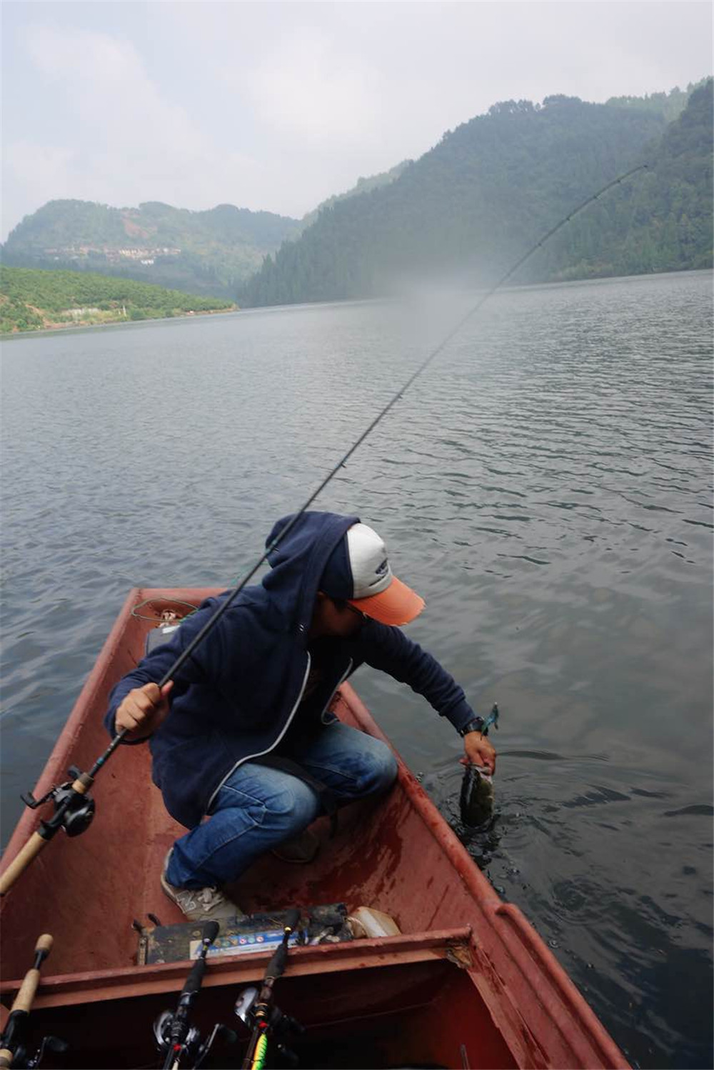 时间:10月2日 地点:H水库 人物:我、老余 H水库一直是我们既爱又怕的场子,因为它面积巨大,靠电推找鱼非常困难,标点与标点之间隔的太远,而且考虑到电量的因素基本不敢跑很远,加上季节模式很强,冬季跟夏季我们一般不太敢来;但又是由于它水域大,里面又有巨物,对我们路亚人来说,充满了诱惑。 如今正值金秋十月,秋高气爽,清晨早早来到H,水位很满,其实我还是心里打鼓,因为H水库这么满的水我还是第一次来钓,但H的景色确实不错,水域面积巨大,空气清新,顿时心情变的很舒畅。 按照来之前做的做钓计划,我们趁着早口来到既定水域,令人惊讶的情景出现了,可能是船的到来惊扰到饵鱼,附近出现大量鲈鱼追小鱼而疯狂炸水的盛况,那现场真的是钓H几年以来从未碰到过的,一下子都忘了抛竿,老余赶紧提醒,我才慌忙换上毒牙,狼狈抛竿。这时的中鱼率非常的高,基本只要是打到炸水范围,往回收都有口,而且鱼还不小,两人玩的不亦乐乎。 随着太阳出来,炸水也就没了,美味的中饭过后,我们决定改打标点,主要选择障碍,果不其然,我用大武在几个障碍处擒获几尾体型非常不错的鲈鱼,兴奋的不得了,实在是很久没有在H那么爽过了,下午临近收杆,我既然还意外收获小马口一尾,无意中破了马口处,实在是惊喜不断。