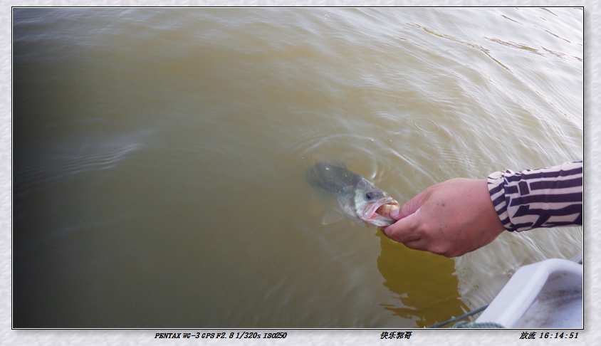 期间李辉也中鱼,个体不大,直接放流。过了一会,老板来了,和他聊天的时候,又用5164+武虫下中了一尾体型不错的BASS,在溜鱼的时候特意停留的一会,BASS洗鳃而去,老板直说可惜可惜,其实大家都懂的,我不想提鱼上船,这叫自然放流。 在半个小时之内,我一共中鱼4尾,一尾小BASS直接放流。李辉也中小BASS4尾,悉数放流。