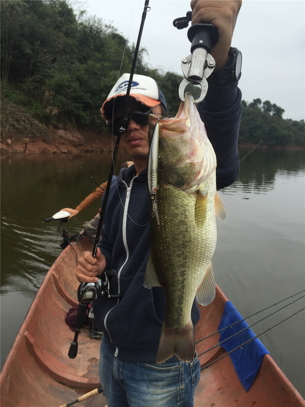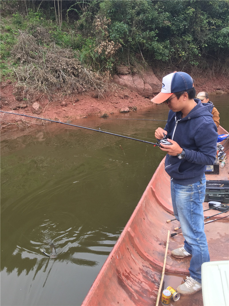 一直听说该水库有鲈鱼,一直嫌远没去,趁着国庆最后一天高速免费,决定还是去试试。 艰难的行车,一路的询问,到达水库,事先有做功课,水库面积不小,虽比不上上次的万亩H水库,但也有好几千亩,但水库形态却是迥然不同,H很开阔,L却是狭长曲折,弯道多如牛毛,当天无风,水非常平静,利于开船,三人迫不及待装船出发。 新场子总是让人特别兴奋,看到各种各样的标点,总是想抛上一两竿,由于水库较大,事先也没来过,我们也决定打频率,尽量多跑些地方,多了解下水库。 继COCO唐率先中鱼后,我们后来都有收获,鱼都不小,力道也不错,大家着实过了一番瘾。水库岔道众多、岔道中有大湾,大湾套小湾,小湾里还通小湾,我们光顾着看到标点一味去钓,后来也没留意怎么开的船,结果想返回时傻眼了,面对四处的弯道,已经不记得怎么来的,尝试了两次都走错了,没开出去,幸好张老大手机上有不需要联网的定位地图,照着地图开了出去,安全返航。 虽说这次不小心迷路了,但该水库的形态大家都还感觉不错,如此多的弯子,玩起路亚来感觉也很有意思,只是我们在钓获中还是发现鱼有被电过的痕迹,资源保护不容忽视,路亚人从放流开始。