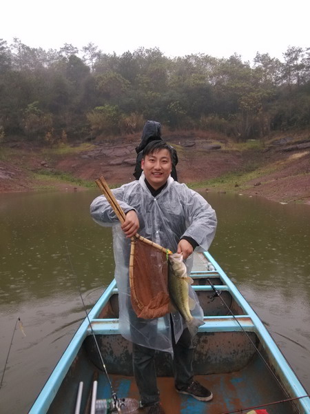 野猪全天里的半龟状态,令他心有不甘,决定耍赖!不走了,住下来明天转战另一个钓场;那是冒着冬雨暴钓的一天,野猪还是第一中鱼,我紧跟其后,并且更加大!