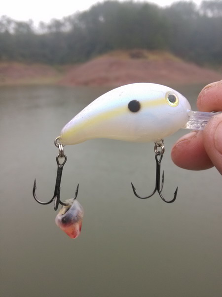 这天里,我基本只用了一款饵,KVD的白色静音crank,最大潜深约2.4米,恶魔殿下操控并没令我失望,水阻、碰底、咬口、甚至是饵和鱼的擦碰~传导至我手里分辨明晰,这也导致了一个小悲剧,三连竿后的一竿--中鱼眼,罪过!